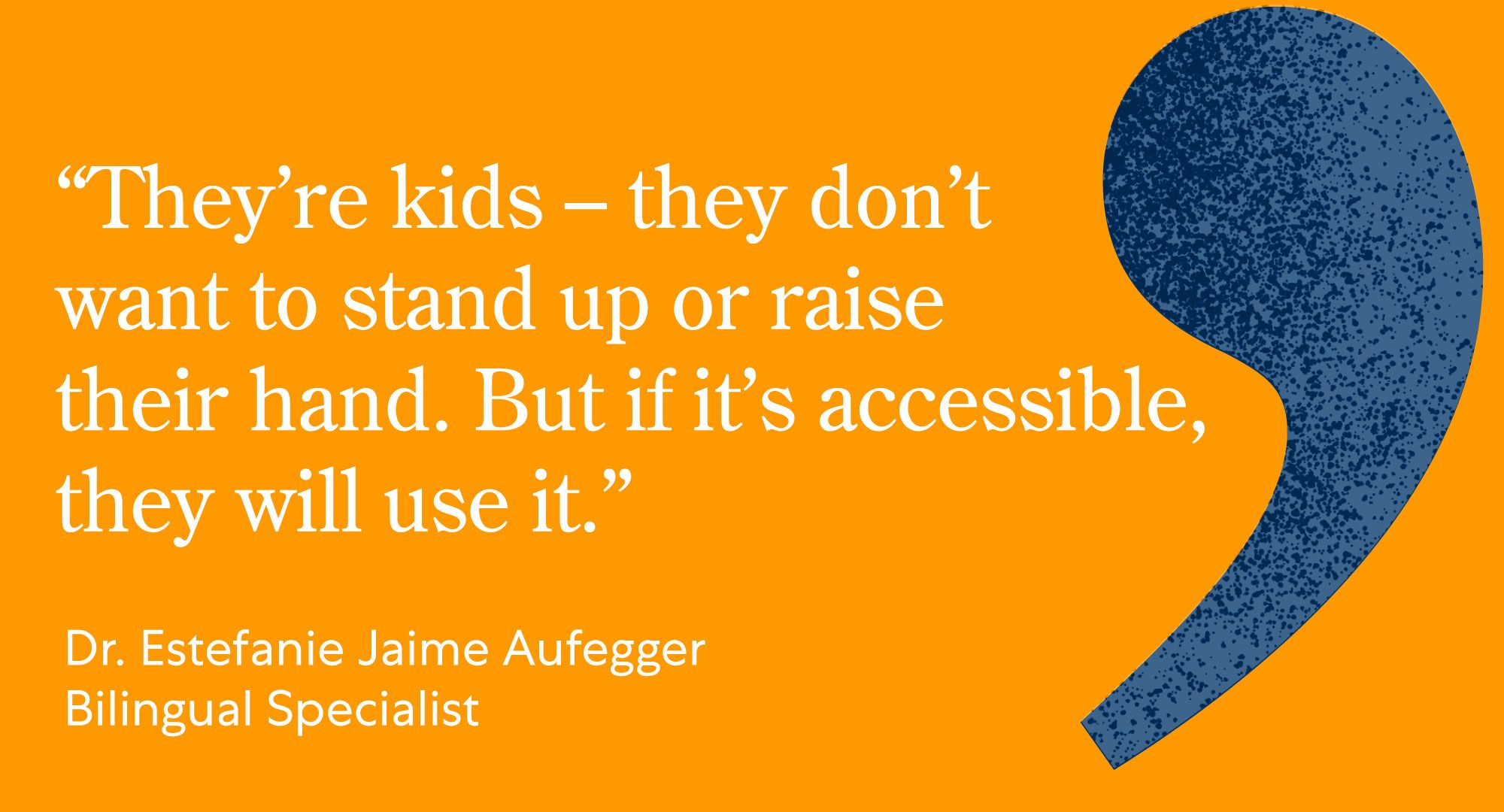 “They’re kids – they don’t want to stand up or raise their hand and ask for it. But if it’s accessible, they will use it,” said Aufegger, the bilingual specialist.“We advocated during the Holdsworth meeting that each student needed to have their own while testing.” said Aufegger, the bilingual specialist.