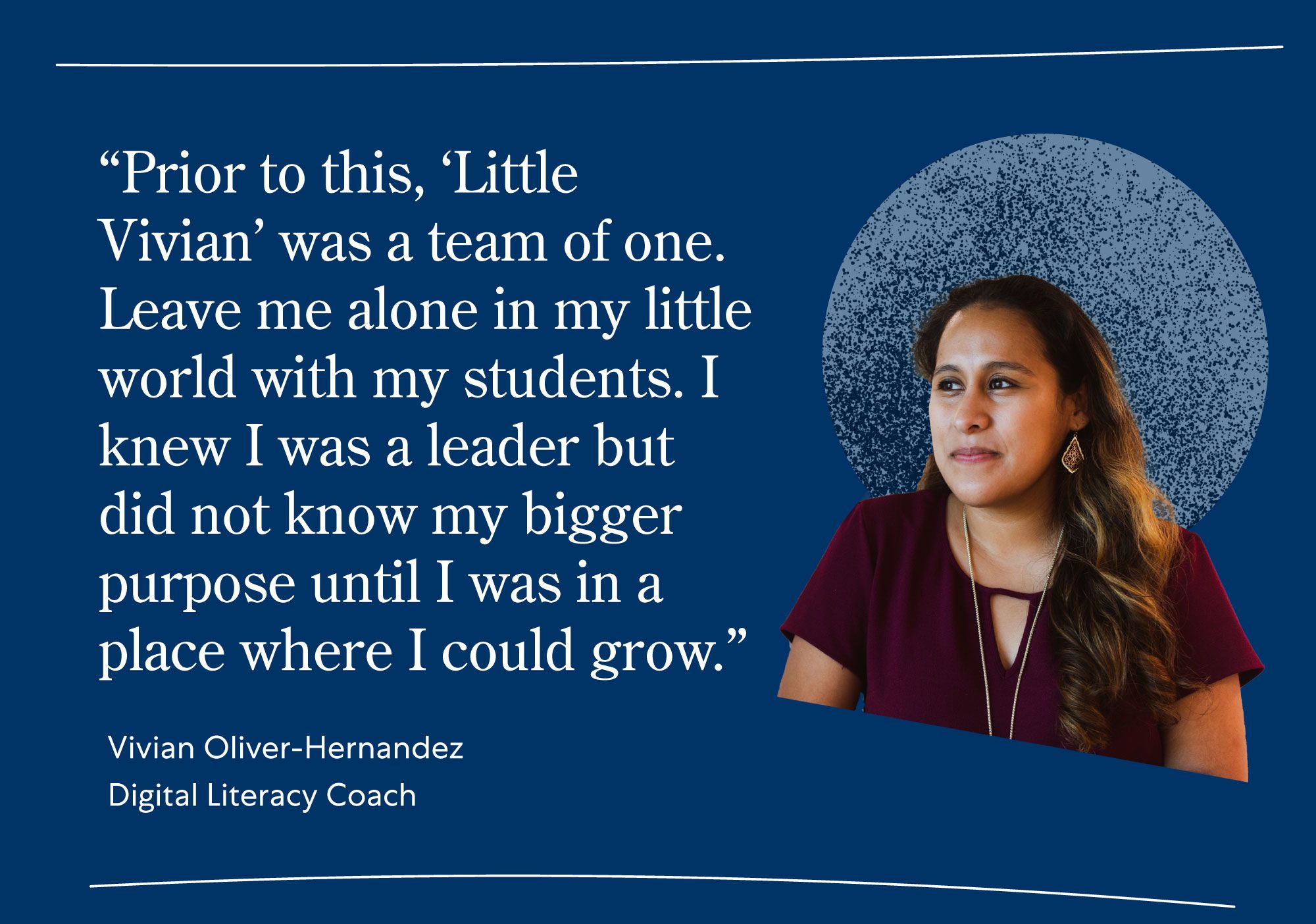 In her new role, Oliver-Hernandez observes teachers and coaches them on how to build students’ literacy skills.