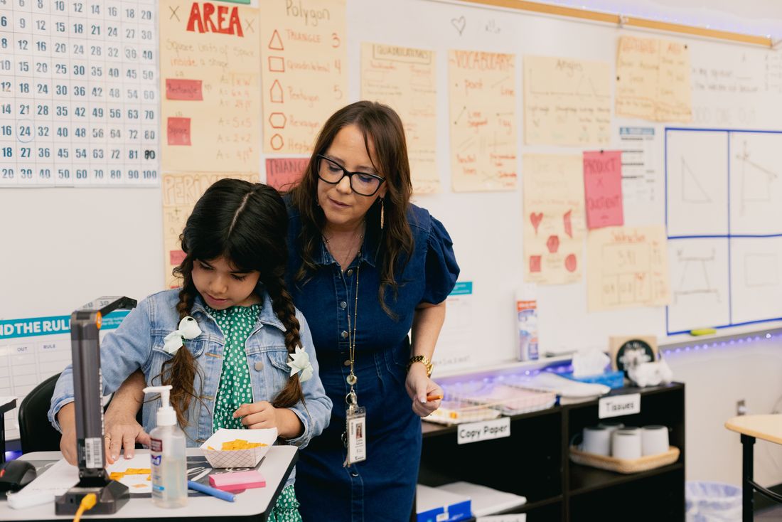 Bilingual Teacher Cynthia Sullivan helps a student at Mahaffey Elementary in Klein ISD.
