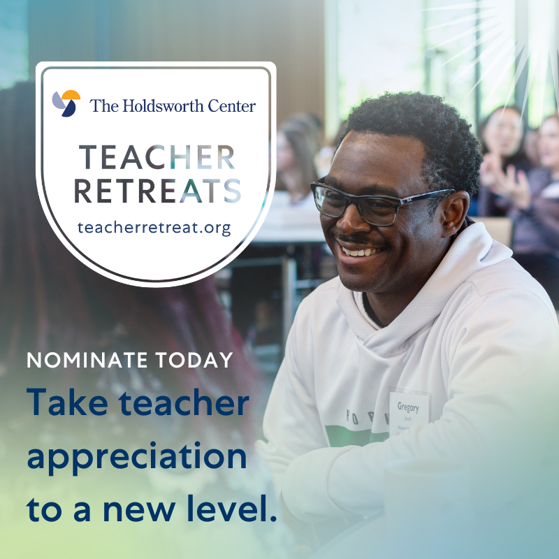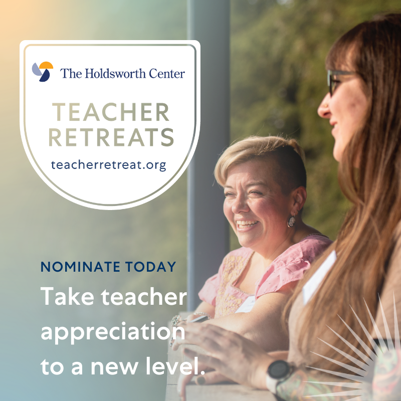 Teachers’ jobs are hard. Nominating one for a weekend retreat is easy. The Holdsworth Center is accepting nominations through August 31 for teachers in the Houston area. Recognize a teacher today at teacherretreat.org.